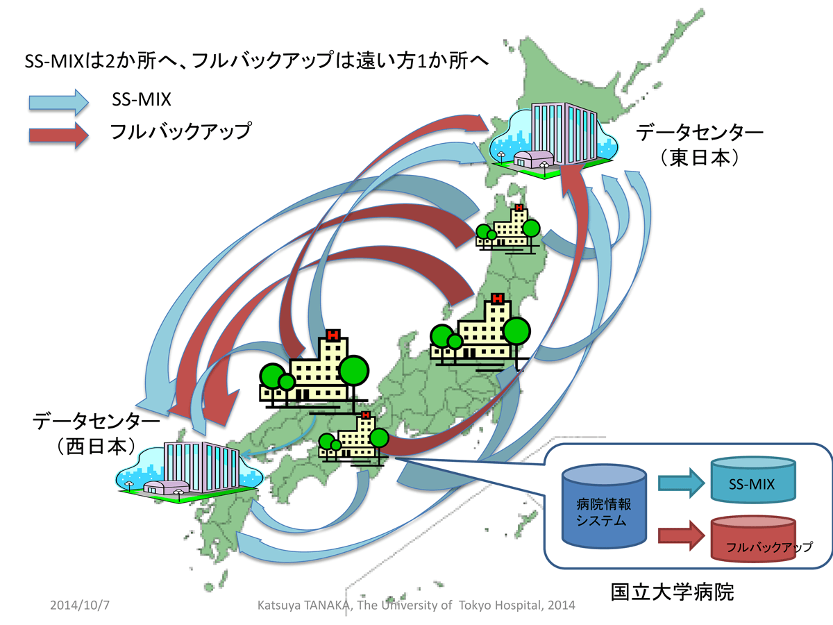 また、データベースなどのフルバックアップデータについては、自施設から見て遠い方にあるデータセンタへの遠隔バックアップを行います。東日本の大学病院なら西日本のデータセンタ、西日本の大学病院なら東日本のデータセンタといった具合ですね。