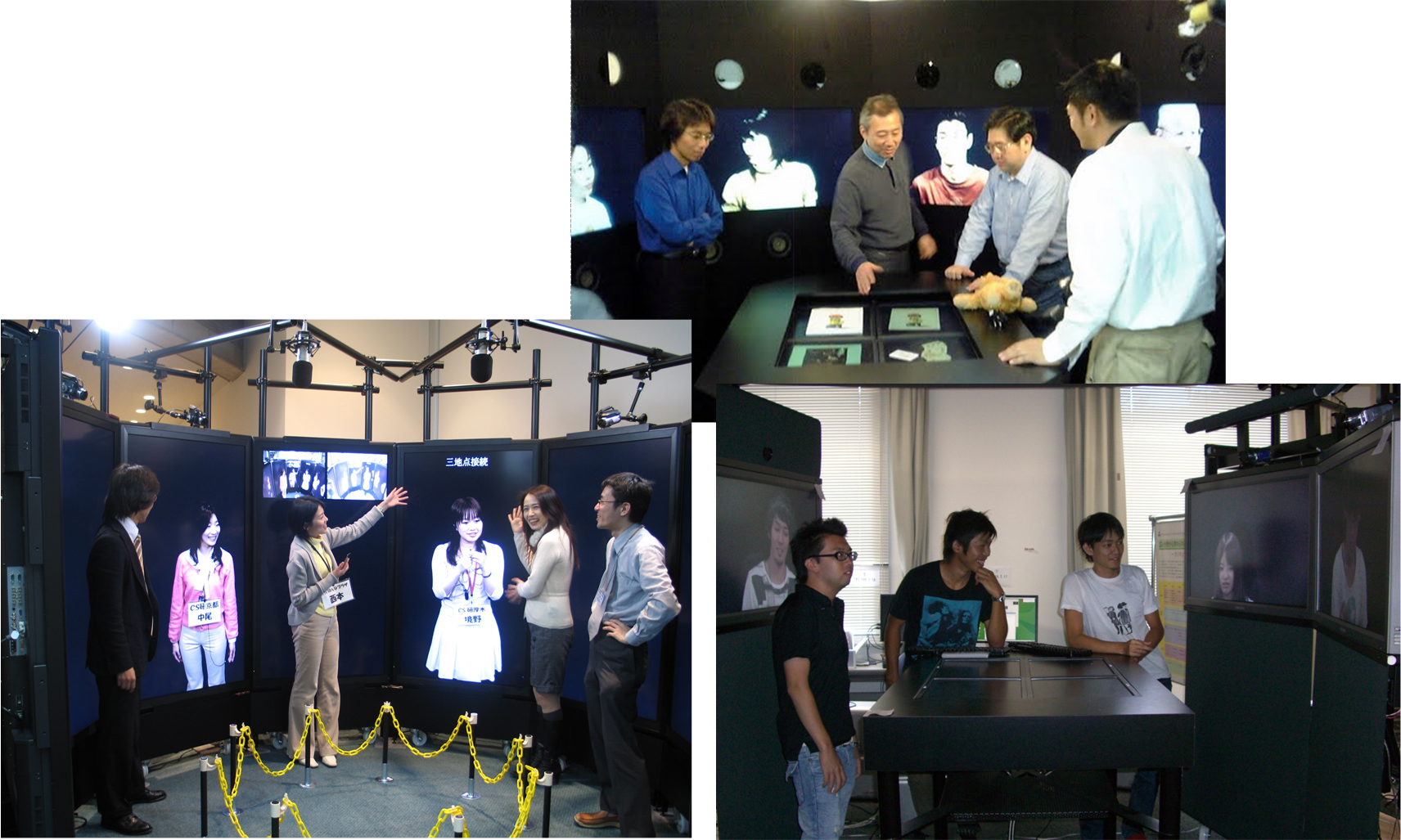 Takada: t-Room is a communication system that NTT Communication Science Laboratories (“CSL,” hereafter) has continued to study for more than a decade. The key concept of t-Room is “room-sharing,” a term we have coined to represent achieving the feeling as if distant participants are actually in the same room. In general, teleconferencing systems are widely known as a means for remote parties to engage in video communication. However, in teleconferencing, the other party is on the other side of a “window,” which is the display, so this stops short of removing the this-side-that-side communication wall. Given this situation, with t-Room we have sought to realize communication and collaboration with a greater sense of unity by superimposing rooms with identical layouts that exist at remote locations.
